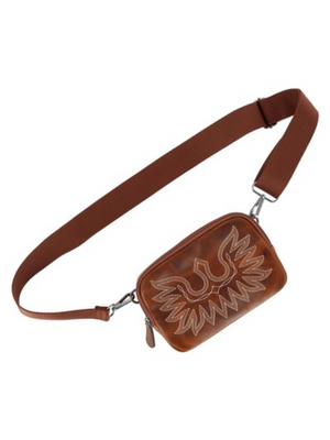 Transportez vos essentiels avec style grâce à ce sac-ceinture Ariat pour femme issu de la collection Casanova. Confectionné en cuir véritable, il combine élégance et fonctionnalité. Sa couleur brun riche et son motif de couture façon bottes à 4 couleurs lui donnent un look western distinctif.