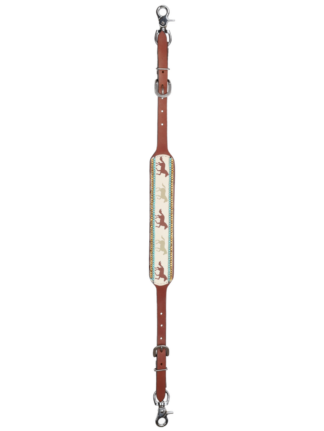 Ajoute une touche de caractère à ton équipement avec le remonte bricole Wild Hoof Echoes de Showman®. Conçu pour capturer l’esprit libre du cheval de l’Ouest, cet accessoire se démarque avec ses incrustations aux motifs tribaux et chevaux galopants. Fabriqué en cuir huilé moyen, il combine style audacieux et confort pratique.