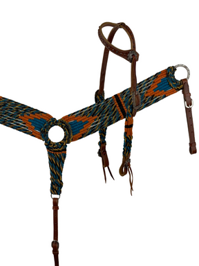 L'ensemble Showman® Sunset Corded Mohair avec montant à oreille unique et poitrail allie fonctionnalité et élégance pour les cavaliers exigeants. Fabriqué en cuir huilé moyen, cet ensemble offre durabilité et sophistication. Le montant à oreille unique est orné de clous en cuivre et de coutures blanches, ajoutant une touche raffinée.