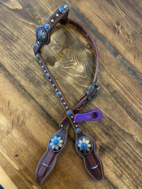 Bride Western à Oreille en Cuir avec Boucle Antique Silver