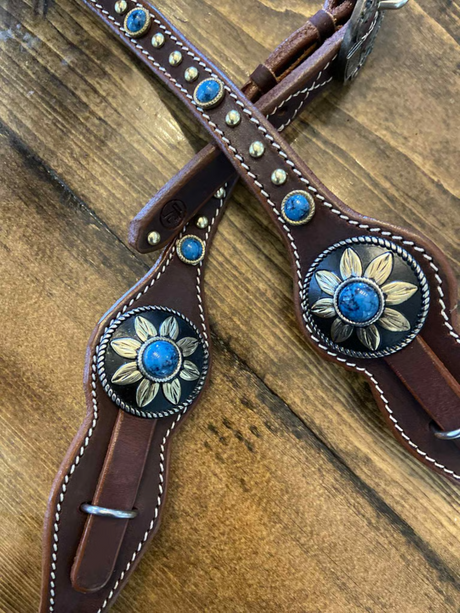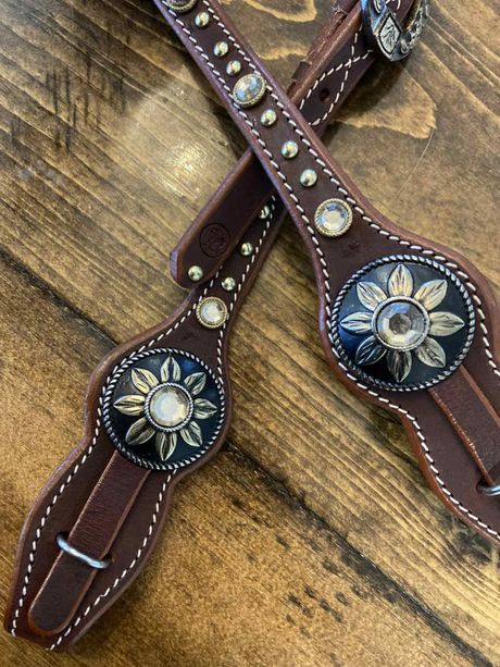 Ensemble de bride et de bricole western une oreille Tooled Meadows