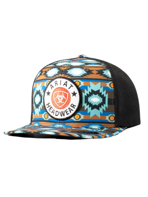 Offrez à votre jeune cowboy ou cowgirl la casquette Ariat Youth FlexFit 110, ornée d’un patch rond inspiré du style Southwest. Cette casquette structurée à 6 panneaux se distingue par son tissu aux motifs colorés dans des tons de bleu, brun et blanc sur le devant. Le patch Ariat, avec un fond brodé blanc et le texte “Ariat Headwear” en noir, ajoute une touche distinctive et tendance. Le dos en maille noire assure une bonne aération, tandis que la fermeture snapback permet un ajustement parfait pour un confort optimal. C’est l’accessoire idéal pour compléter une tenue décontractée tout en affichant l’esprit western.