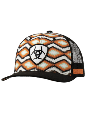Casquette Ariat Femme Imprimé Southwest Orange avec un design coloré et un dos en mesh. Confortable et stylée, parfaite pour les journées actives.