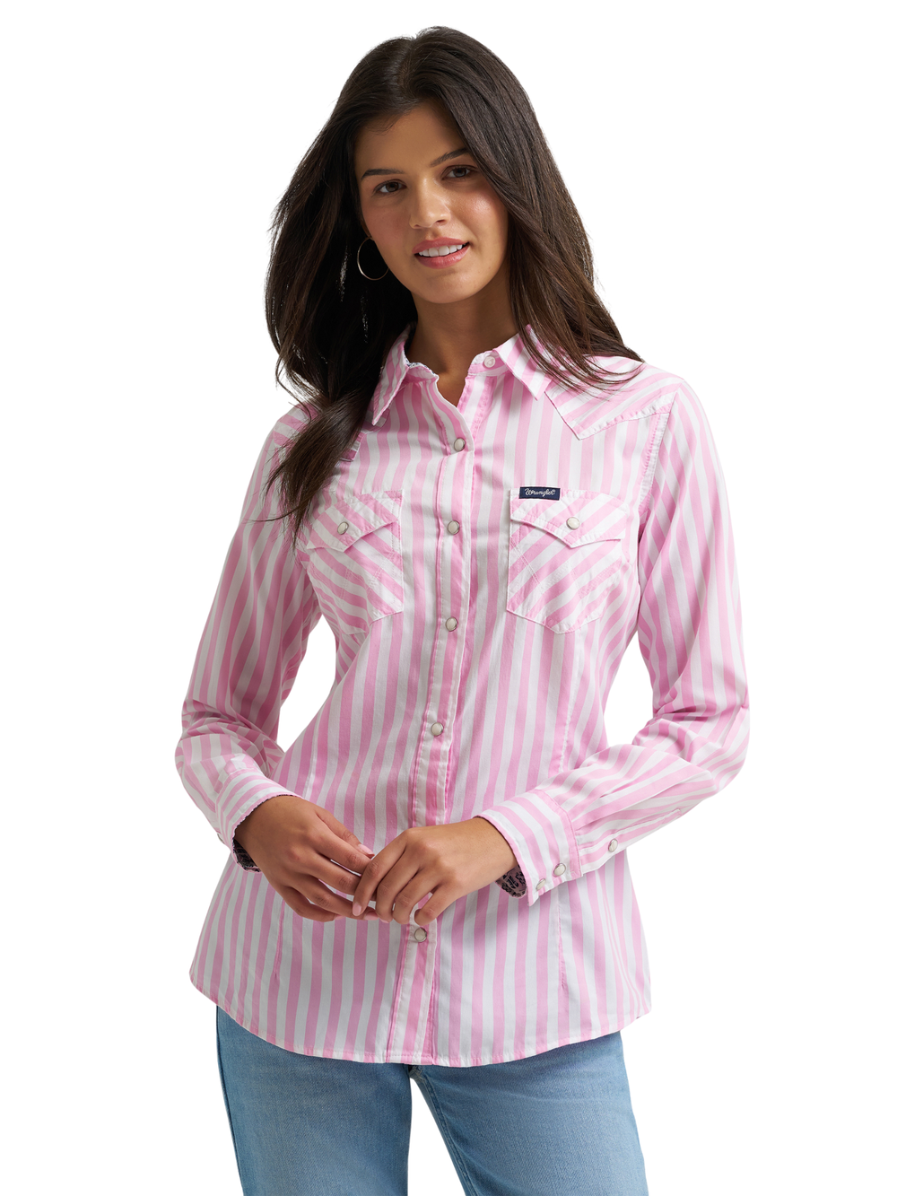 La chemise Western pour femme Wrangler Retro® en couleur Pink revisite le style classique avec une touche délicate et moderne. Conçue pour offrir une silhouette féminine et élégante, elle se distingue par son tissu doux et fluide composé de lyocell, de polyester et de coton. Cette combinaison procure un confort remarquable tout en garantissant une tenue impeccable tout au long de la journée.