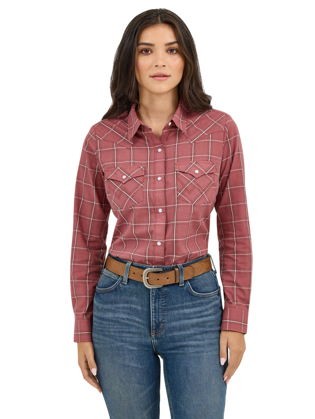 La Chemise Western à boutons-pression Wrangler® Essential pour femme – Wine est une pièce incontournable du style western moderne. Conçue pour allier confort et élégance, elle offre une coupe flatteuse et un tissu doux qui accompagne tous vos mouvements.