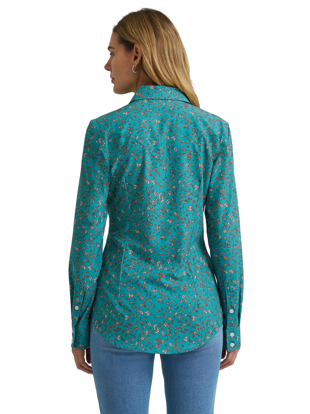 Adoptez le style western performant avec cette chemise Wrangler® Performance Aria pour femme en coloris Green. Conçue pour l’équitation, cette chemise à manches longues allie confort et liberté de mouvement grâce à sa matière stretch. Le tissu léger et respirant permet de rester au sec et à l’aise tout au long de la journée, que ce soit pour monter à cheval ou pour vos activités quotidiennes. La coupe ajustée et le design floral subtil apportent une touche féminine tout en restant fidèle à l’esprit western. La chemise Performance Aria est idéale pour les cavalières recherchant une tenue fonctionnelle et élégante.
