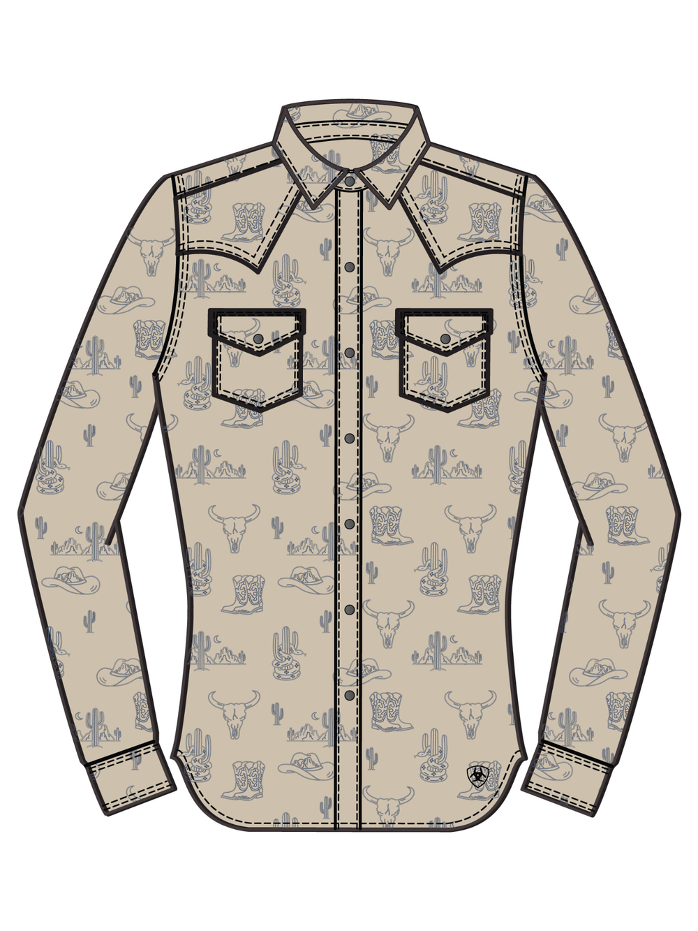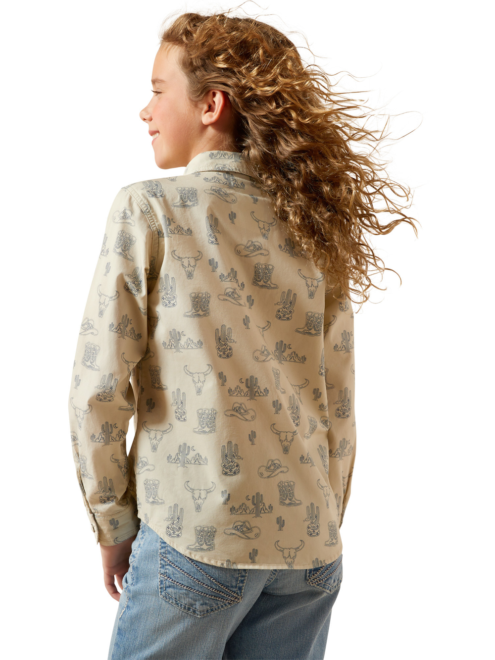 Adoptez un look résolument western avec la Chemise à pressions Mila, idéale pour les jeunes passionnées d’équitation ou d’ambiance sud‑ouest. Cette chemise conjugue l’allure iconique des western shirts avec un imprimé Southwestern élégant et plein de caractère. Parfaite pour passer du quotidien à l’écurie avec style, elle se pose comme une pièce polyvalente que l’on porte autant à l’école qu’au ranch.