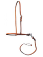 Ce noseband est livré avec un tiedown en cuir assorti, mesurant ¾” de large, équipé d’un mousqueton nickelé pour une fixation rapide et sécurisée à la sangle ventrale.