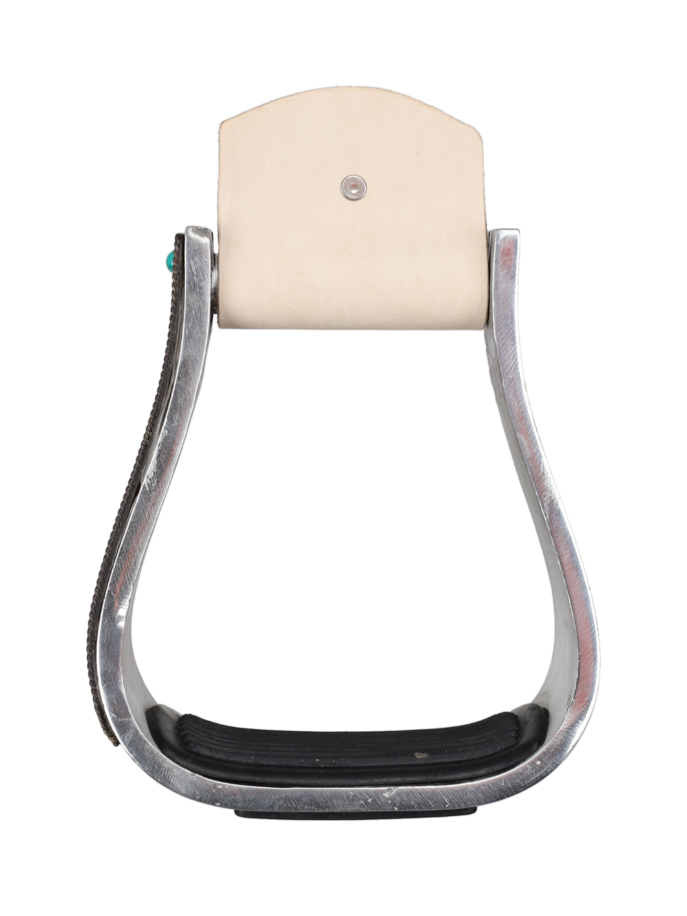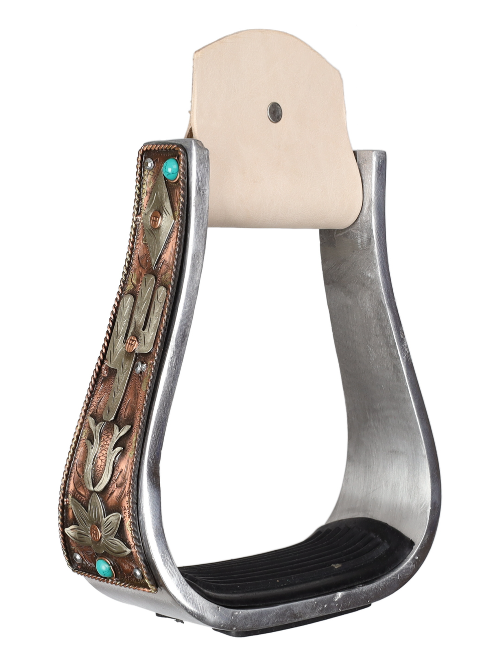 Les étriers western Showman® Arizona en aluminium offrent légèreté, stabilité et un style sud-ouest distinctif avec gravures et pierres turquoise.