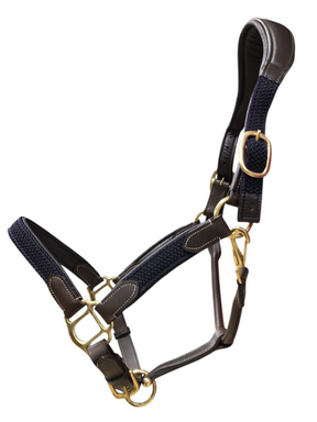 Ce licou en cuir Softy est un mélange parfait d’élégance et de confort. Son design raffiné intègre une superposition de nylon tissé, qui apporte une touche unique et moderne. Le cuir souple épouse parfaitement la forme du cheval, tandis que la muserolle et la têtière anatomiques, doublées d’un rembourrage doux, assurent un confort supérieur lors du port. Les ajustements multiples permettent une adaptation optimale à la morphologie de chaque cheval. Les finitions en laiton massif offrent robustesse et élégance, pour un look chic et fonctionnel à l’écurie comme en concours. Disponible en brun foncé avec tissage navy.