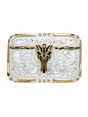 Cette boucle western rectangulaire Longhorn offre un style audacieux et authentique, parfait pour compléter une ceinture classique ou ajouter une touche distinctive à une tenue western. Conçue par Crumrine, elle présente une combinaison raffinée de finitions argent et bronze, rehaussée d’un remplissage noir antique qui accentue chaque détail du motif. Le Longhorn, symbole incontournable de la culture western, occupe le centre de la boucle et attire immédiatement le regard.