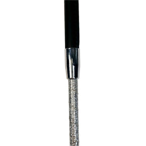 Élégante cravache de dressage à baguette étincelante et manche en cuirette cousue. Idéal pour une personne qui souhaite ajouter un peu de fantaisie à son ensemble de dressage.