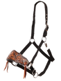 Faites sensation avec le licol Bronc Magnolia Noir en Nylon de Showman®, alliant style western et fonctionnalité pratique. Ce licol arbore un nez en cuir magnifiquement gravé à la main, orné d’un motif floral magnolia encadré d’une finition sombre pour un look classique et raffiné. Les accents en studs argentés et les conchos en cuivre et argent apportent une touche d’élégance, idéal pour un usage quotidien ou les événements.