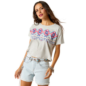 Le T-shirt Birdie d'Ariat est ultra doux avec une coupe ample et carrée, parfaitement raccourcie pour s'associer avec des jeans taille haute. Idéal pour un look décontracté et moderne, ce t-shirt offre un confort maximal grâce à son tissu léger et respirant. Son design inclut un graphique sérigraphié sur un fond gris chiné, ajoutant une touche de style à votre garde-robe quotidienne.