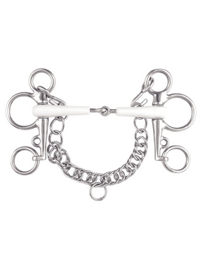 Le mors Pelham Equimouth est conçu en thermoplastique de haute qualité, garantissant un confort optimal pour votre cheval. Ce matériau est bien toléré et favorise la mastication naturelle. En améliorant le contact avec la bouche du cheval, ce mors contribue à son bien-être et à sa performance. Les anneaux et les noyaux internes en acier inoxydable assurent robustesse et durabilité.