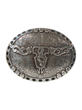 Ajoutez une touche western audacieuse à votre tenue avec la boucle ovale Nocona. Conçue par M&F Western Products, cette boucle robuste est ornée d’un arrière-plan floral gravé et d’un crâne de taureau en relief, parfait pour afficher votre style authentique. Les bords lisses et les petits clous hexagonaux accentuent son design distinctif et intemporel. Que ce soit pour une compétition, une soirée, ou une sortie décontractée, cette boucle apportera une touche de caractère à votre look.