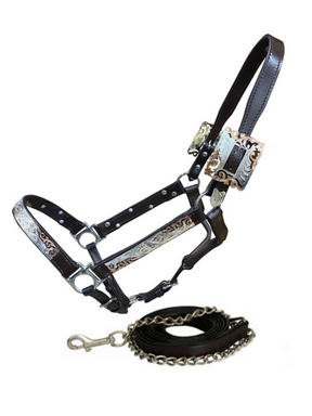 Licou de Show en Cuir Dark Oil avec Barre Argentée et Accents Dorés