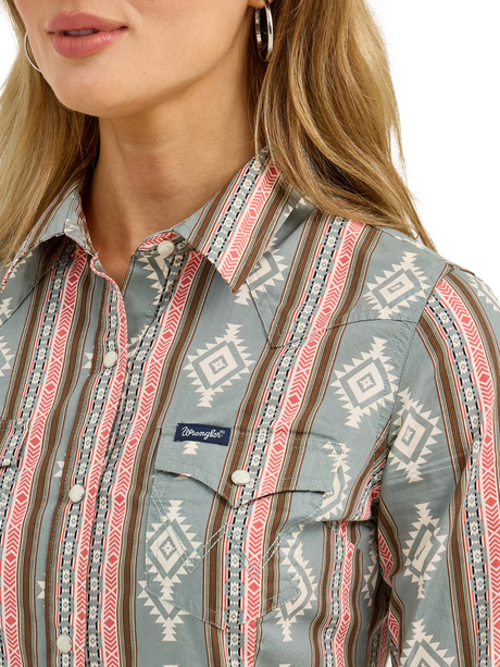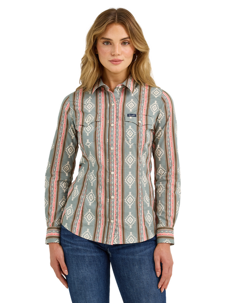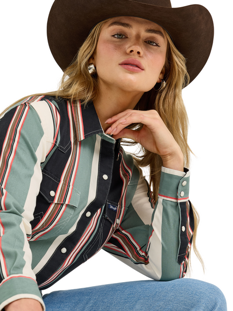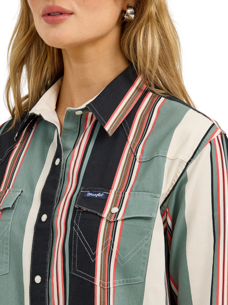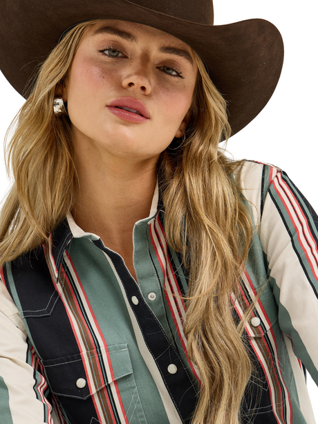 Chemise Western à rayures brillanet broderies - Femme
