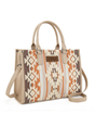 Le sac Wrangler Sherpa Aztec Tote/Crossbody est conçu pour offrir polyvalence, style western et organisation efficace. Son design associe une toile rayée résistante, des détails Aztec en sherpa et des finitions en cuir synthétique, créant un look chaleureux et distinctif, parfait pour le quotidien.