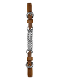 Elle se fixe facilement à la plupart des mors grâce à ses extrémités en cuir huilé pré-percées avec 3 trous, offrant un ajustement précis pour la majorité des chevaux. Les boucles en acier inoxydable nickelé garantissent une solidité et une durabilité à toute épreuve. Sa construction robuste et le double maillon central permettent une meilleure répartition de la pression, offrant à la fois sécurité et confort à votre cheval tout en améliorant la communication avec le cavalier.