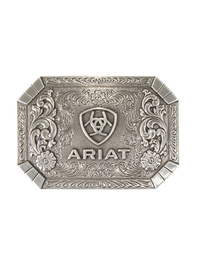 Add a touch of elegance and refinement to your belt with the Ariat Floral Motif Rectangle Buckle. This model, designed by M&F Western Products, features a classic design with an antique silver floral accent that immediately grabs attention. The Ariat logo is placed in the center, framed by floral engravings on an antique silver background, offering a perfect combination of style and tradition. With dimensions of 2-1/2" x 3-5/8", this buckle fits perfectly on standard belts, making it a versatile accessory for any occasion. Made from a zinc alloy, it is both durable and lightweight, ensuring optimal comfort throughout the day.