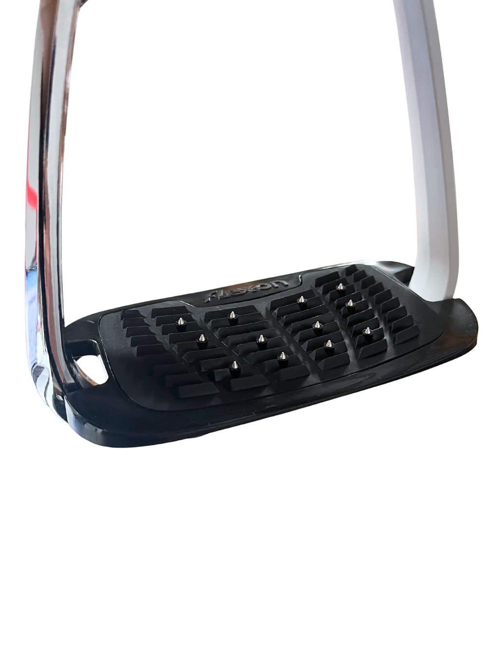 Les IR-ON S sont à la fois robustes et légers. Ils offrent une grande polyvalence technique. Le plancher est incliné. Il est équipé d’un système ultra-grip pour une meilleur adhérence. Cette variété permet une adhérence adaptée à chaque discipline. Conçus et développés en France, ces étriers incarnent une nouvelle vision de l’équitation. Ils allient innovation technique et élégance intemporelle pour une expérience de monte sécuritaire et confortable.