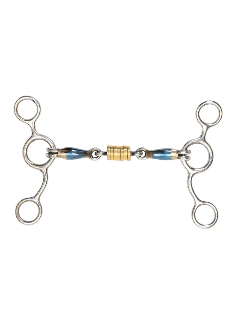 Ce mors convient bien pour le saut et le travail dynamique. Le sweet iron favorise la salivation naturelle. Cette réaction aide à détendre la bouche du cheval. Le rouleau central en alliage de laiton attire l’attention de la langue. Il peut aider à calmer les chevaux sensibles ou agités de la langue. Les disques mobiles ajoutent une stimulation douce.