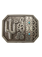 Antique Silver Floral and Cactus Engraved Belt Buckle