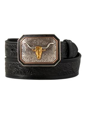 Black leather belt with longhorn buckle - Men - 30 is backordered and will ship as soon as it is back in stock.