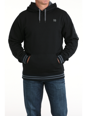 The Cinch Men's Hoodie in Black with Grey Embroidered Logos – MWK1206033 embodies the perfect balance of comfort, understated style, and modern western style. Designed for cool days and everyday activities, this pullover hoodie offers a regular fit that fits all body types.
