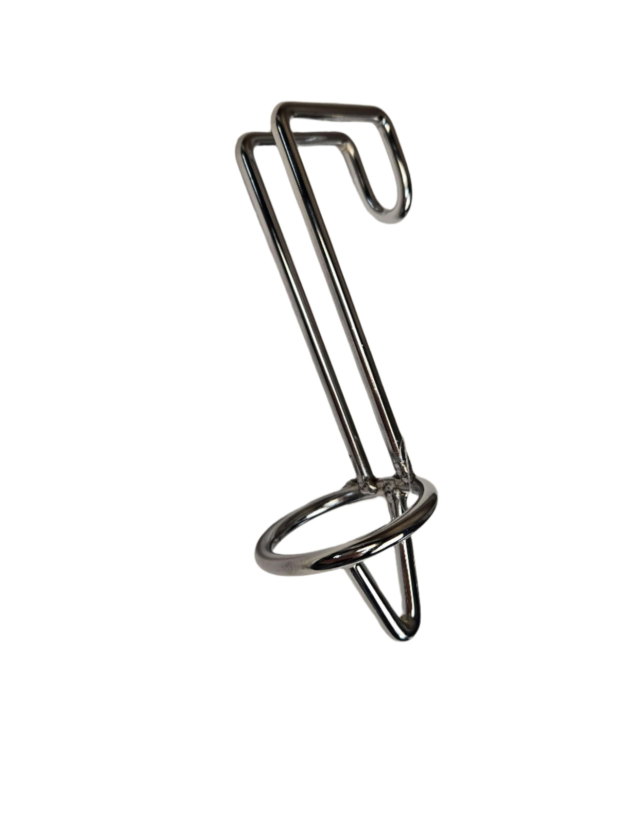Long hook for placing a boiler on. Places on a wooden or metal board.
