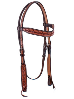 Western bridle with barbed wire browband - Horse is backordered and will ship as soon as it is back in stock.