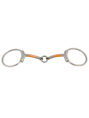 François Gauthier's Lifesaver bit is made of brushed stainless steel. The rings are 3" with sliding sleeves. The bars are copper and double-jointed. The ring in the center is the lifeline.