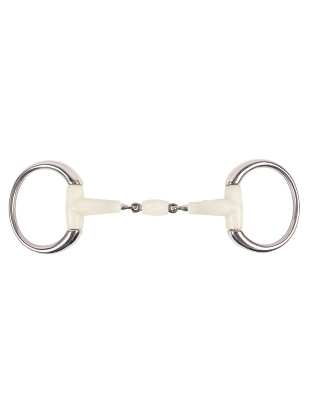 The Happy Mouth Contour Double Joint Eggbutt is designed for comfort and efficiency. Its slightly oval Eggbutt rings provide greater stability than a loose-jointed bit, while still allowing for more mobility than other models. Its curved mouthpiece naturally adapts to the contours of the horse's mouth, ensuring better pressure distribution and a softer fit. Made with a high-tech polymer, this bit is a gentle alternative that promotes relaxation and acceptance. The integrated apple flavor stimulates the urge to chew and makes the experience more enjoyable for the horse. Used in dressage, hunter, or working with young horses, this versatile bit combines functionality and everyday comfort.