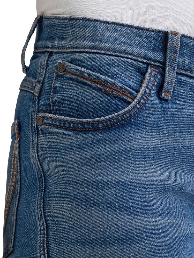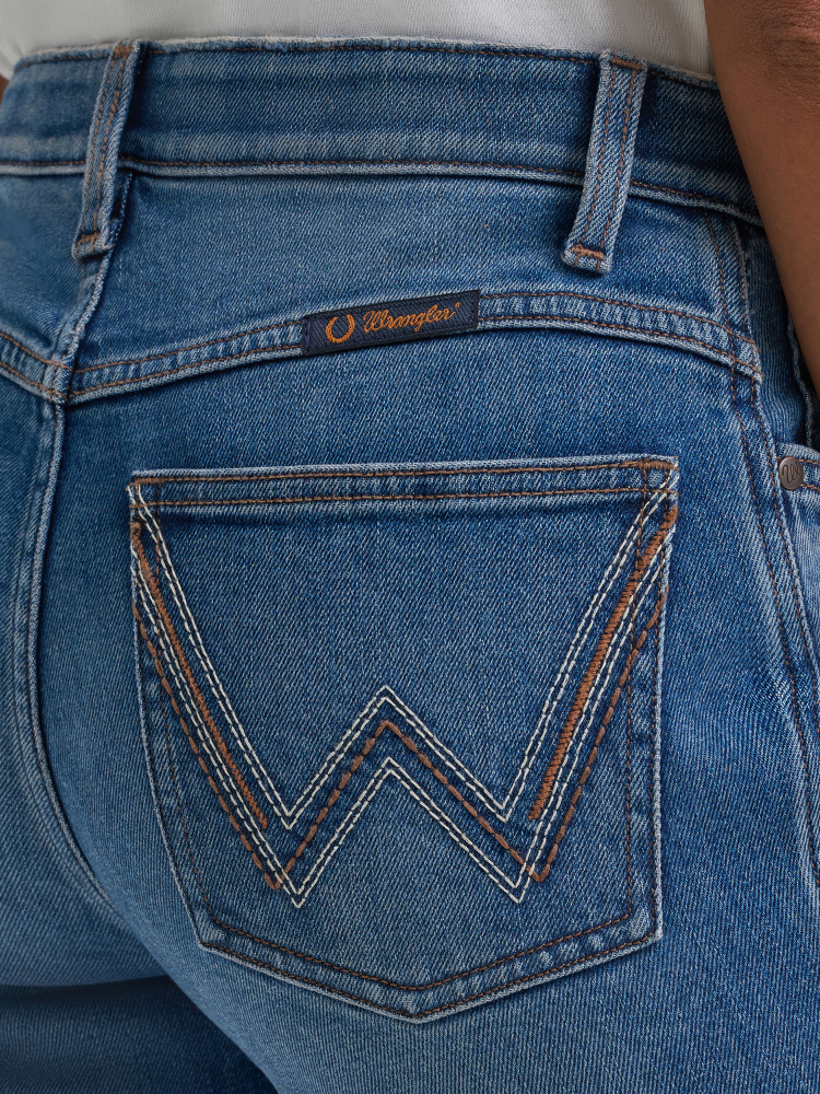 Porté au ranch, pour une balade à cheval ou en ville, le jean Wrangler® Ultimate Riding Bootcut assure confort et maintien, tout en offrant un look raffiné et intemporel.