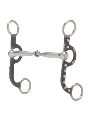This antiqued bit features a 5" soft iron mouthpiece with copper inlay, 6" silver levers, and German silver dot trim.