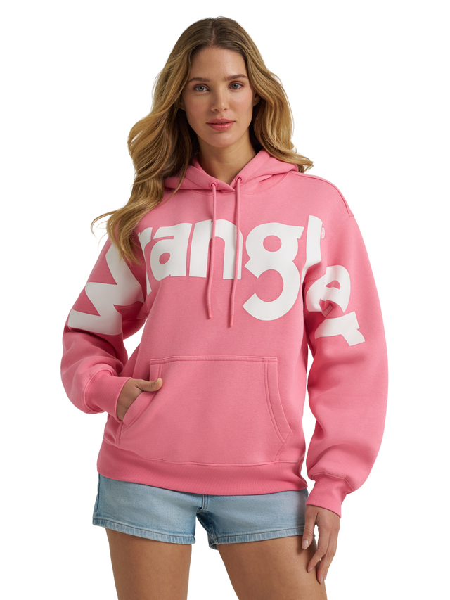 Le Hoodie Wrangler Retro® Punchy – Femme – Rose poudre combine confort doux, style western moderne et logo graphique marquant pour un look tendance.