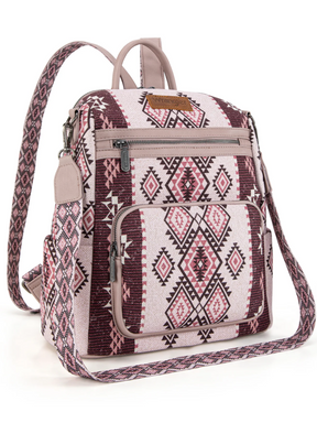 This versatile Wrangler backpack impresses with its modern western style and bold Aztec print.
