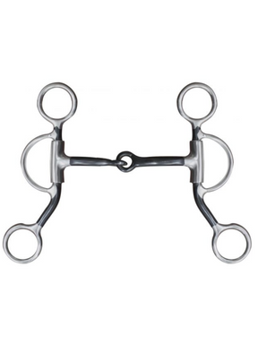 The Showman Lever Snaffle Bit is a black stainless steel bit. The shanks are 6 3/4"
