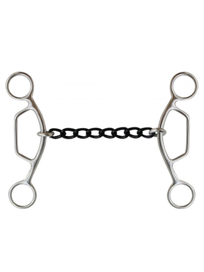 L’embouchure chaînée de 5,25” en acier blué procure une sensation légèrement plus douce et réactive dans la bouche du cheval. Le matériau blué apporte une finition polie et esthétique, tout en favorisant un contact confortable et contrôlé. La conception en chaîne permet une distribution de pression uniforme, encourageant une bouche détendue et réceptive.