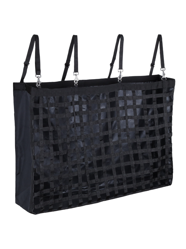 Thanks to its four adjustable straps and sturdy hooks , it easily attaches to fences, gates, or panels, offering quick and secure installation. Its large capacity allows you to feed several horses at once while reducing waste and mess on the ground.