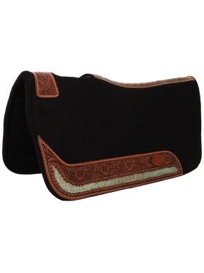 Designed for functionality, this mat features leather reinforcements for added durability. The addition of hand-engraved leather and a Caymon Brandy and Aqua Croc embossed accent gives this mat a unique western feel that stands out in training and competition alike.