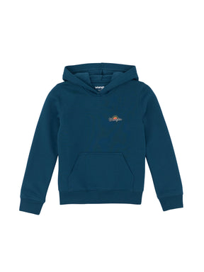 This Wrangler® boys' hoodie, available in Reflecting Pond Dark Blue, combines modern western style with casual comfort . Perfect for chilly days at the stable or school, it'll keep up with young riders on all their adventures.