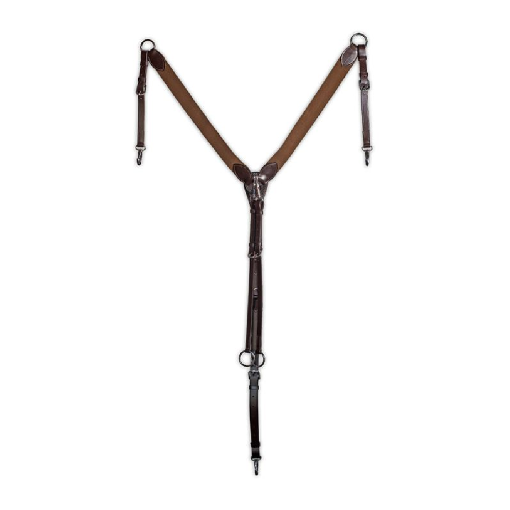 The elastic breastplate keeps the saddle stable and balanced. It also offers great freedom of movement, whether on the flat or when jumping. The wide elastic sections and soft leather collar ensure optimal comfort for the horse. Comes with a ring martingale attachment.
