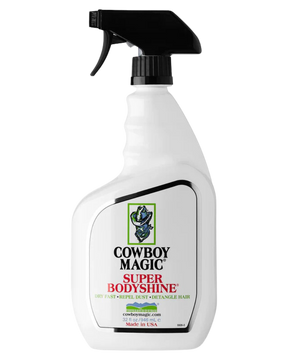Cowboy Magic Super Body Shine is a concentrated, ready-to-use product formulated with natural ingredients. It works instantly to reflect a full spectrum of light, providing maximum, long-lasting body shine, whether under the sun or the ring lights. Enriched with Aloe Vera, it deeply conditions hair and skin, making them stronger and healthier.