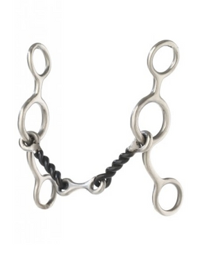 The twisted shank dogbone western bit has a severe action due to its shape and the action of its shanks. Its shape allows for easy control of the horse.