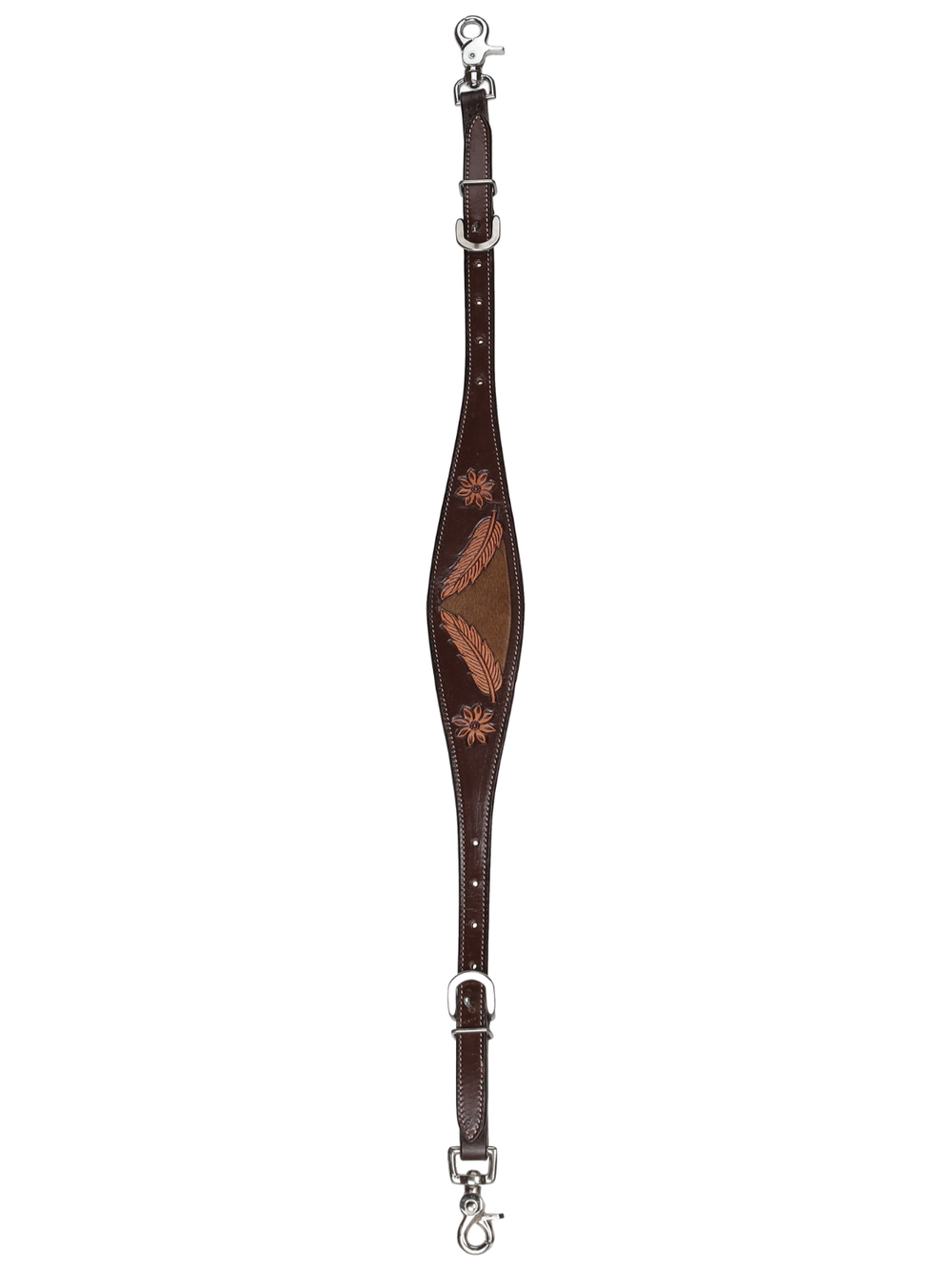 The Raven Hide Showman girth combines distinctive Western style with durable functionality to complement your riding gear. Made from rich chocolate-colored oiled leather, it provides a sturdy and stylish base for any type of saddle.