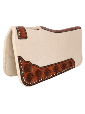 Designed for performance and aesthetics, this saddle pad ensures smoother rides thanks to its shock-absorbing design. Its reinforced spine provides extra durability, ideal for long rides or intensive training. This pad also features detailed floral tooling on the leather reinforcements and buckstitch accents along the spine.