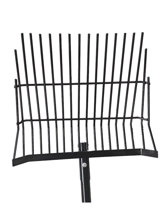Its double-bar design ensures increased stability and improved durability over time. At 15” wide and 12.5” high, this fork head provides an efficient working surface for collecting manure and debris. The narrow 5/8” spacing between the bars retains even the smallest pieces while allowing clean bedding to fall away, facilitating quick and efficient cleanup.