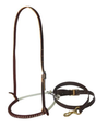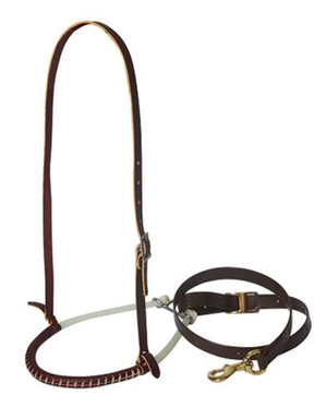 The noseband is crafted from sturdy 3/8" rope, hand-wrapped with laced leather, offering both strength and flexibility. This handcrafted finish enhances comfort on the horse's muzzle while adding a touch of elegance to your tack. The latigo headstall ensures a secure and stable fit, even during strenuous work.